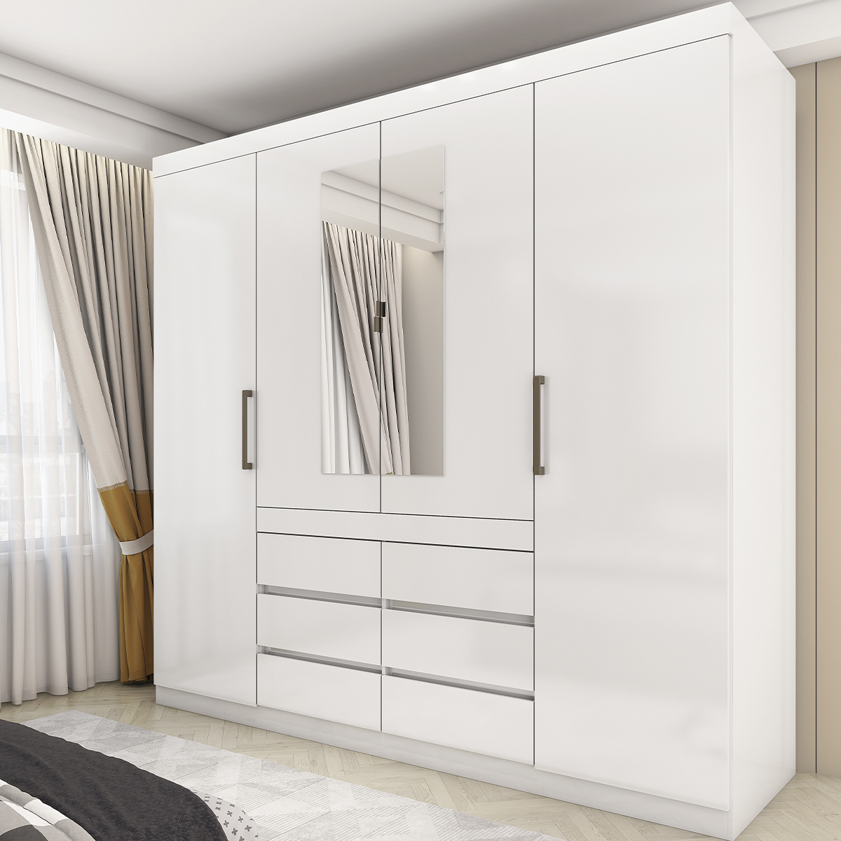 Espelho Integrado (Seu Súbito Mais Fiel!): Quer conferir o visual antes de sair para conquistar o dia? O espelho de corpo inteiro embutido no guarda-roupa te ajuda nessa tarefa! Além de ser super prático, ele amplia visualmente o seu quarto, adicionando luminosidade e uma sensação de grandiosidade digna da realeza.