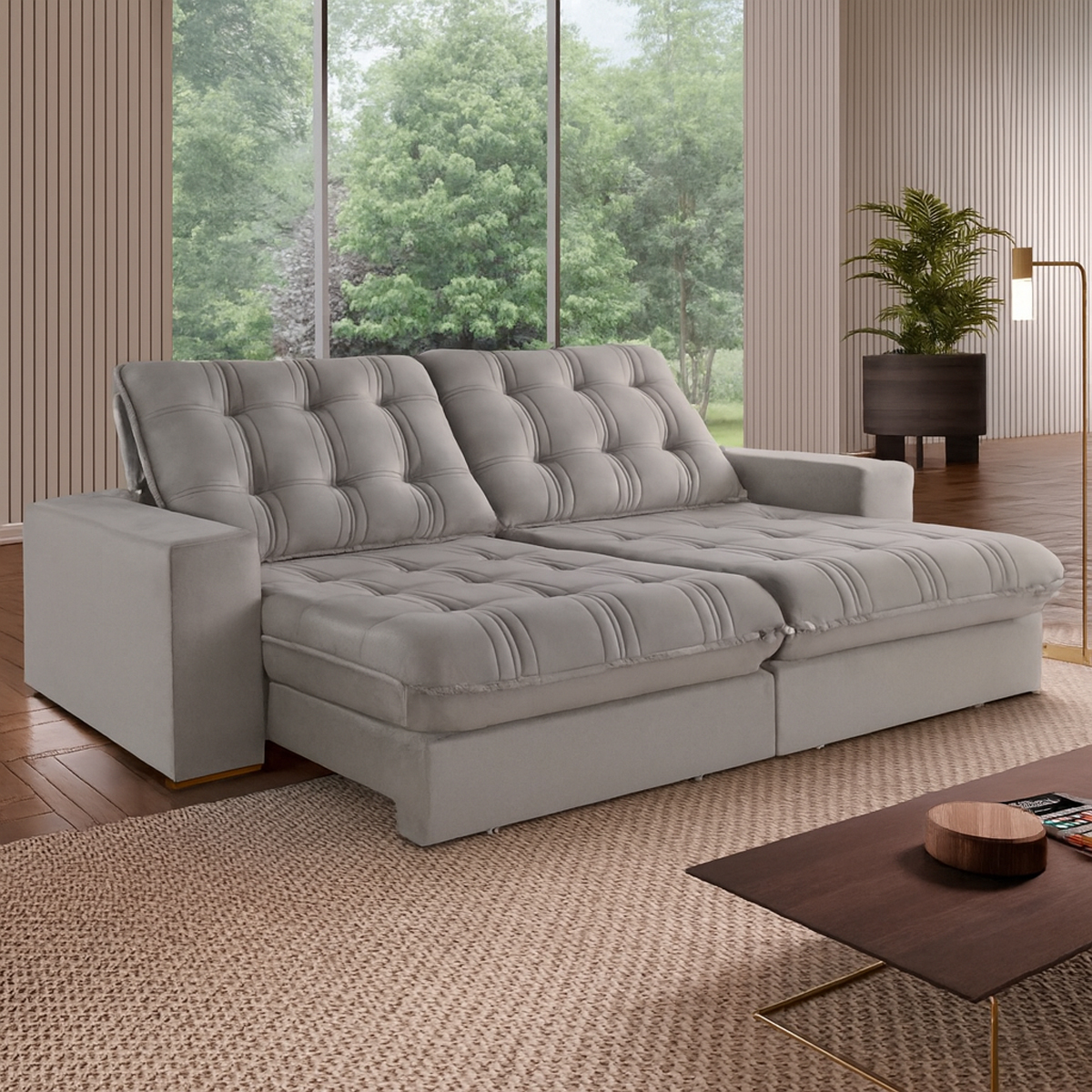 Retrátil (O Convite Aberto para Esticar as Pernas!): Prepare-se para o convite mais tentador do dia! Com o sistema retrátil, você pode esticar as pernas, reclinar-se e transformar seu sofá em uma chaise gigante, perfeita para maratonar séries, ler um bom livro ou tirar aquele cochilo revigorante.