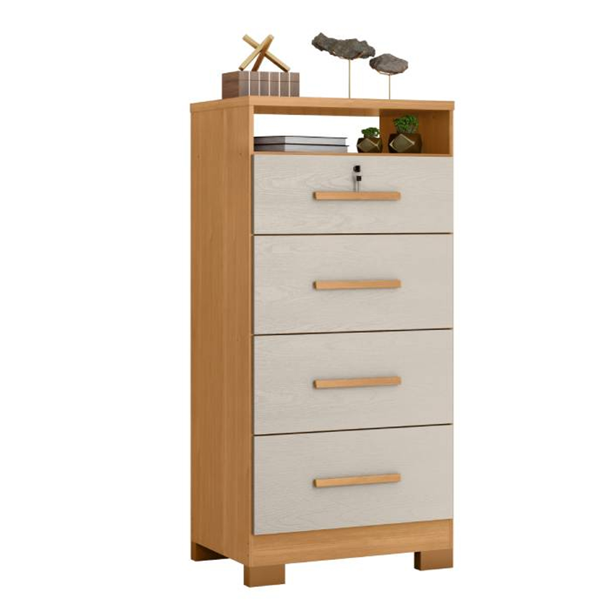Quatro Gavetas Amplas e Espaçosas (E a Primeira é um Cofre Pessoal!): Prepare-se para um nível de organização jamais visto! São quatro gavetas generosas, perfeitas para suas roupas, acessórios, ou o que mais precisar. E a cereja do bolo? A primeira gaveta vem com divisórias (adeus, bagunça de bijuterias e cuecas!) E CHAVE! Sim, seus tesouros (ou segredos!) estarão mais seguros do que nunca. Todas as gavetas deslizam suavemente sobre corrediças metálicas, garantindo facilidade e durabilidade.