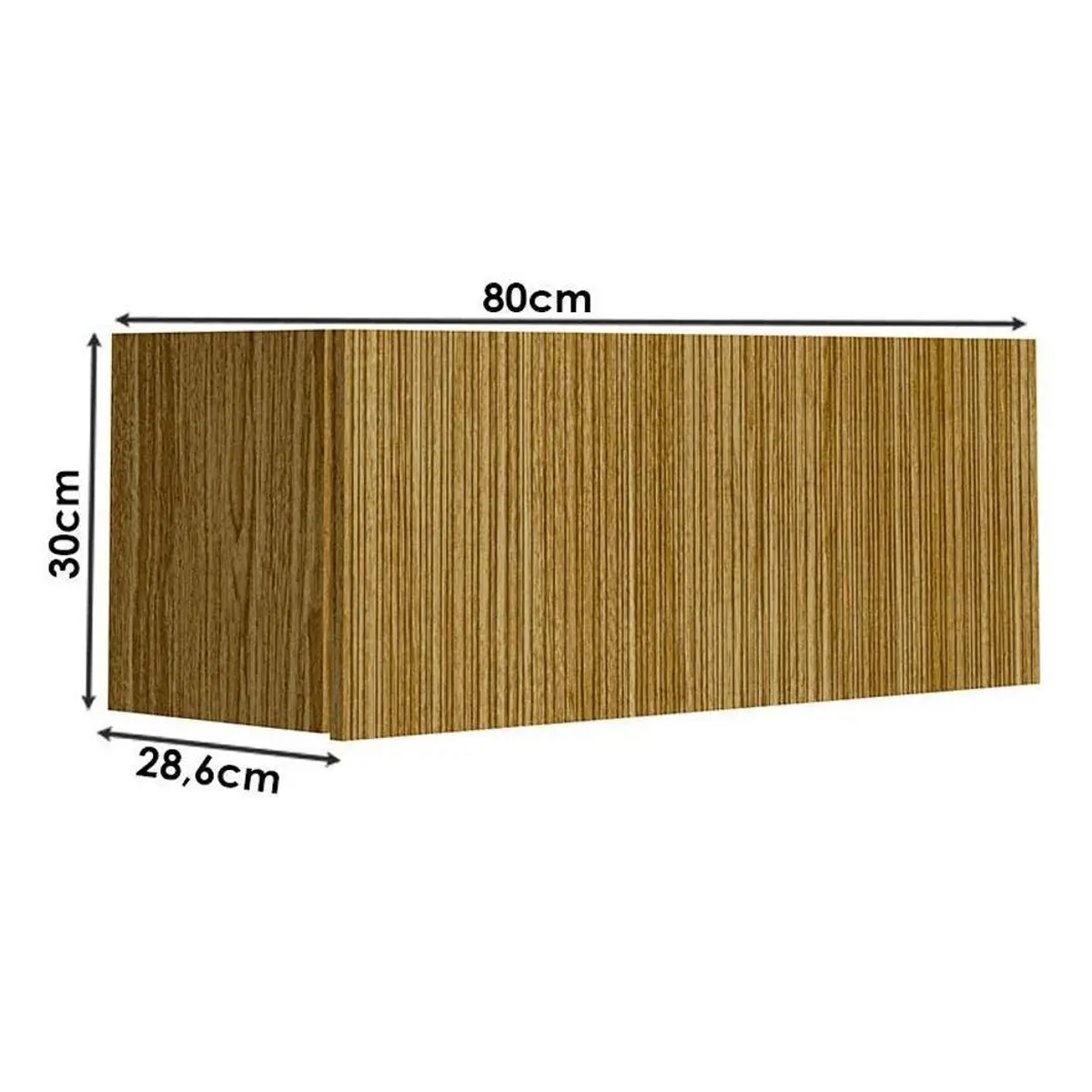 Com 80 centímetros de largura, este armário aéreo é ideal para ser instalado sobre geladeiras e refrigeradores, aproveitando um espaço muitas vezes subutilizado. Sua porta basculante (que abre para cima) oferece acesso fácil e prático ao interior, revelando um compartimento espaçoso para guardar utensílios, mantimentos ou objetos que você deseja ter sempre à mão.