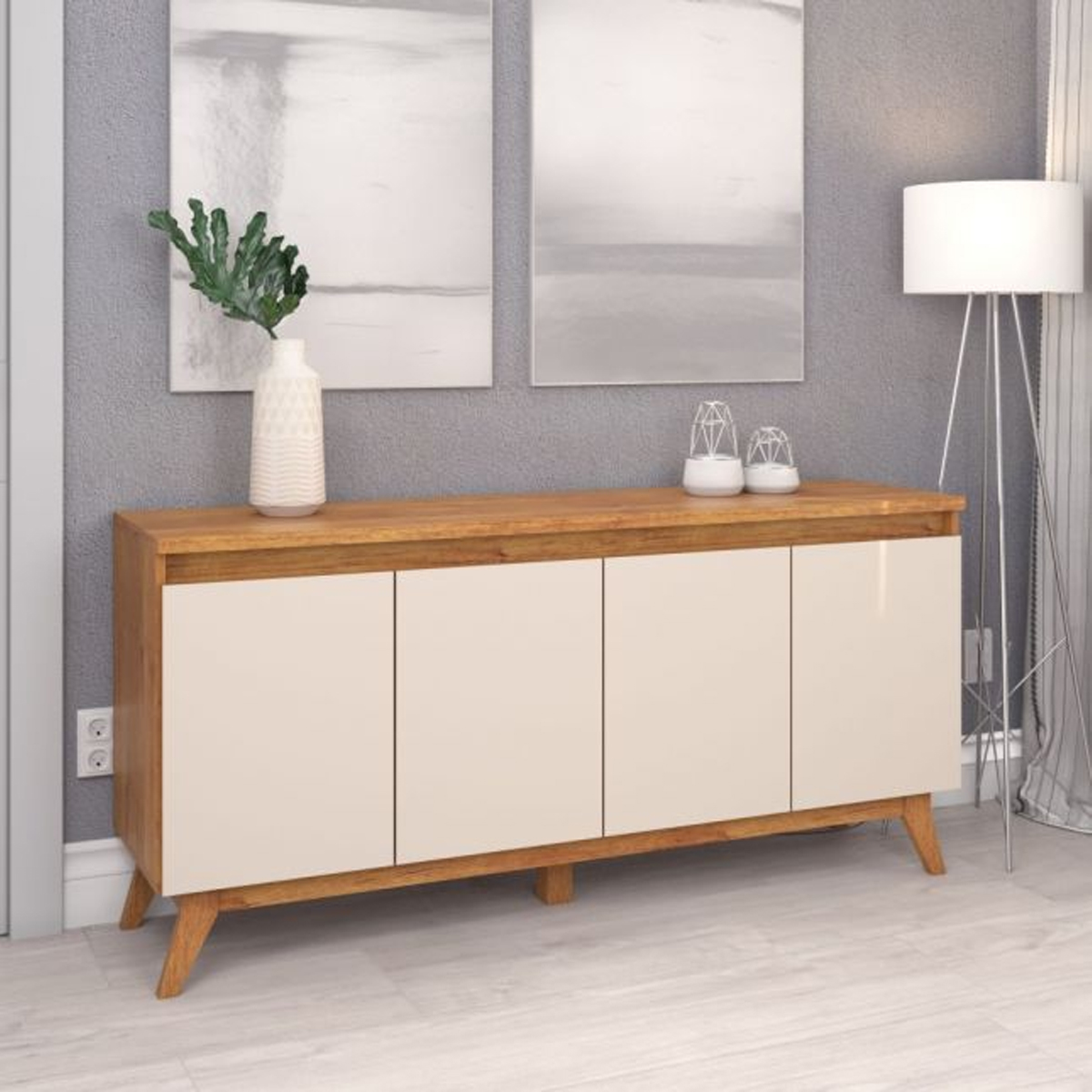 A praticidade e a organização são os pontos fortes deste buffet. Com quatro portas e dobradiças metálicas, ele oferece um amplo espaço interno para você guardar louças, utensílios de cozinha, ou qualquer outro objeto, mantendo tudo organizado e ao seu alcance. Seu design versátil permite que ele seja usado em diversos ambientes, como sala de jantar, sala de estar, home office ou quartos.