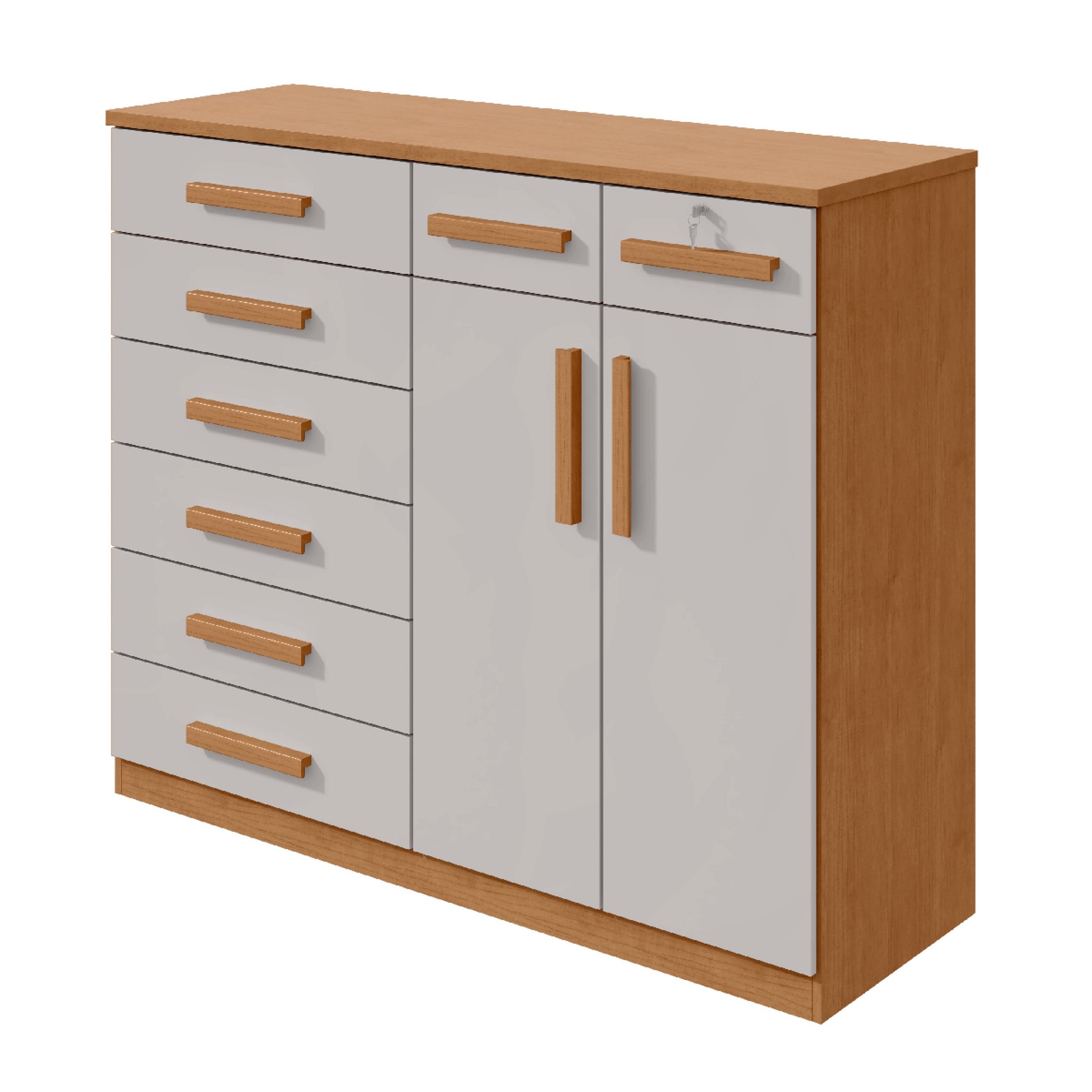 Cômoda Lopas Toronto (8 Gavetas e 2 Portas) Amêndoa com Off White: A Majestosa Solução de Organização e Estilo para seu Quarto!