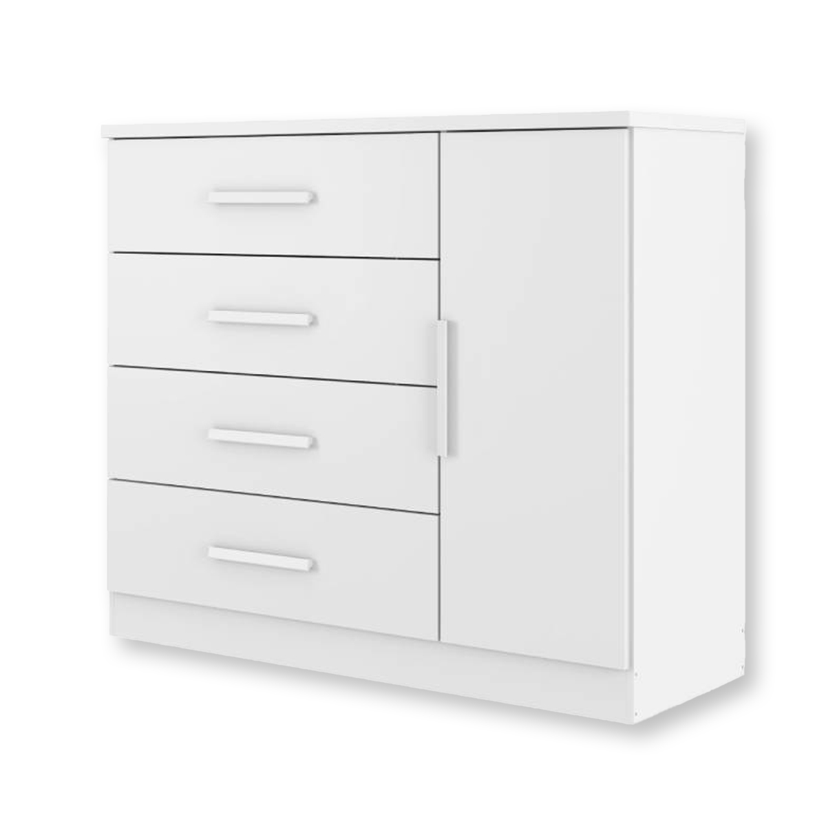 Quatro Gavetas Amplas e Espaçosas (Onde o Caos Vira Ordem!): Perfeitas para suas roupas, acessórios, documentos, brinquedos... ou para aquela coleção de doces que você não quer dividir! Todas com corrediças metálicas que garantem um deslize suave e silencioso. É espaço que não acaba mais!