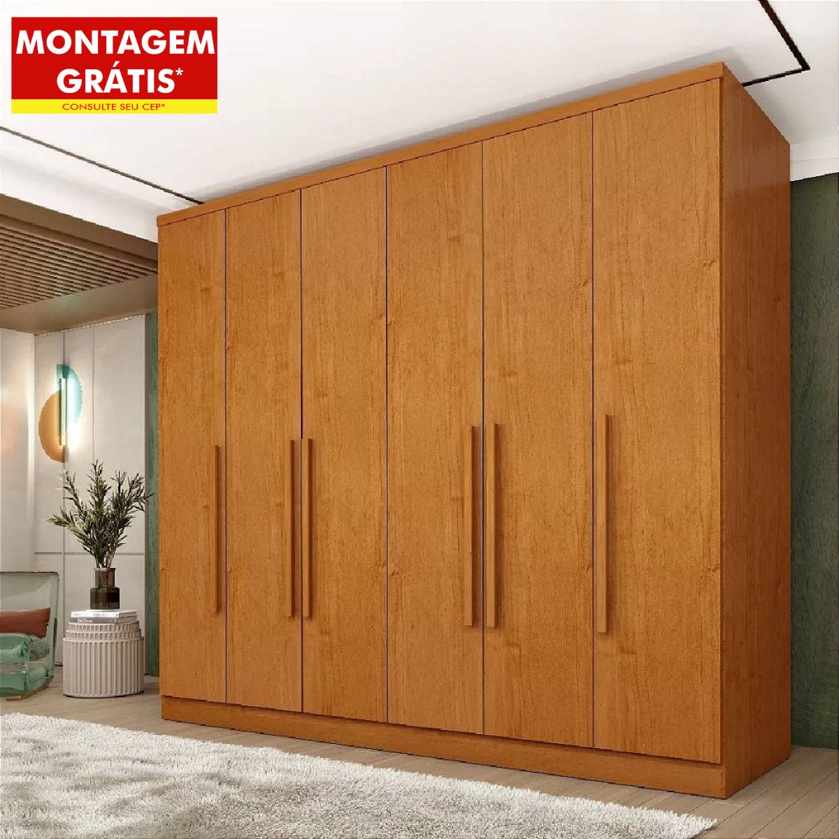 Verifique cuidadosamente as dimensões EXATAS do guarda-roupa e compare com o espaço disponível em seu quarto, incluindo portas e corredores para o transporte e montagem.