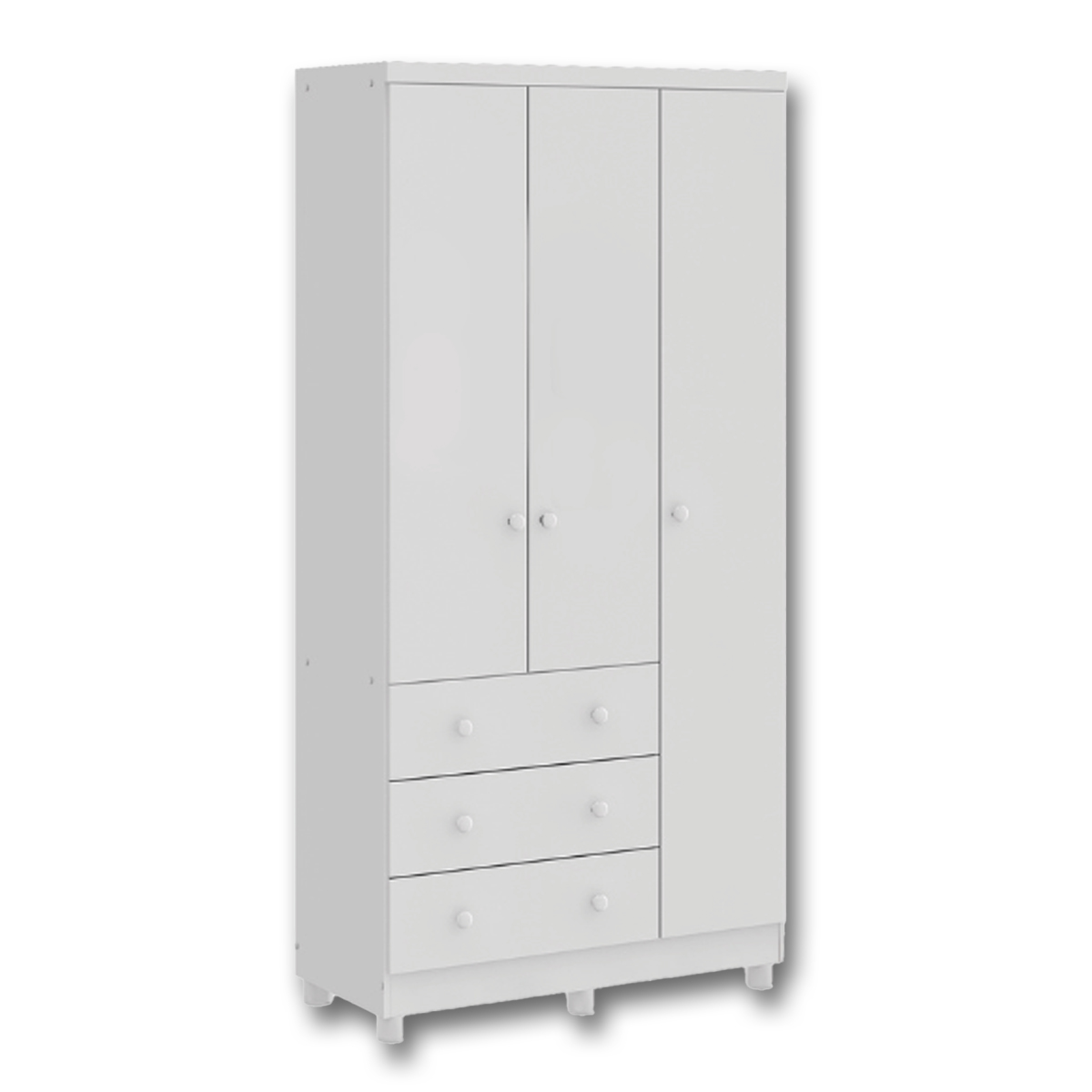 Design Espaçoso e Funcional (Um Universo de Organização!): Com suas dimensões generosas (1,885m Altura x 91,9cm Largura x 41,5cm Profundidade), ele oferece um amplo espaço interno. São 3 portas e 3 gavetas espaçosas para organizar roupinhas, fraldas, cobertores, acessórios, brinquedos e tudo mais que o mundo do seu bebê precisar!