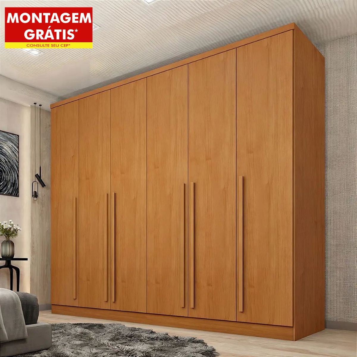 Espaço Sem Limites (6 Portas e 8 Gavetas): Um dos maiores da categoria! Com 8 gavetas internas equipadas com corrediças telescópicas, você tem o máximo de suavidade e abertura total para suas roupas.