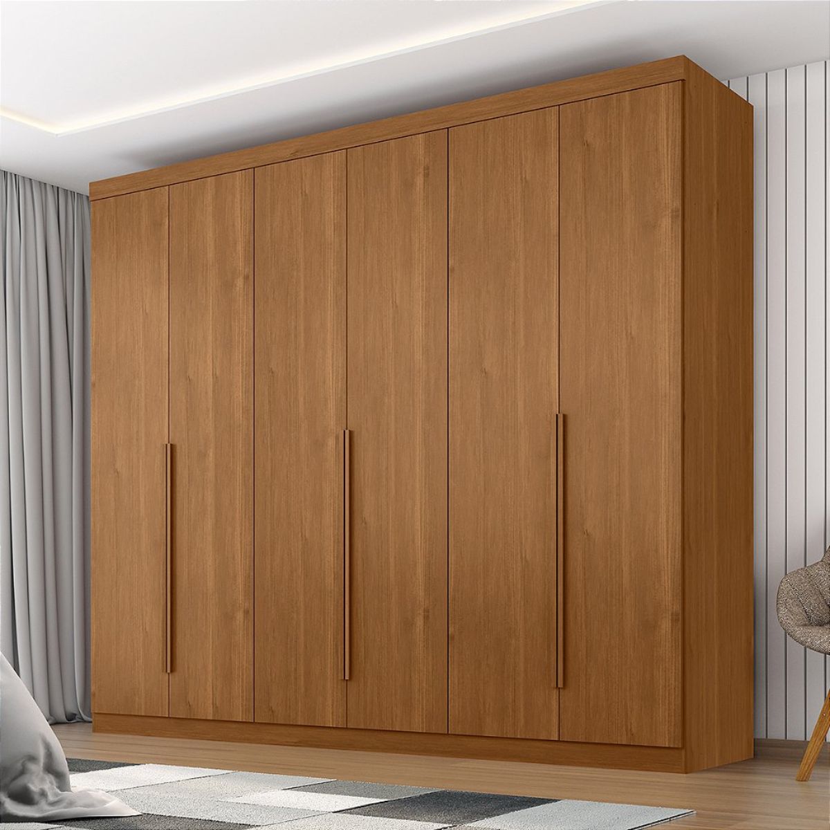 Com suas dimensões majestosas (2,40m de altura x 2,71m de largura), o Guarda-Roupa New Monumental oferece um espaço interno amplo e inteligentemente distribuído para acomodar todas as suas roupas, calçados e pertences. Suas 6 portas de abrir revelam prateleiras espaçosas, nichos organizadores e cabideiros resistentes, perfeitos para organizar suas roupas de forma impecável. As 4 gavetas externas, com design elegante, deslizam suavemente sobre corrediças de alta qualidade, oferecendo o espaço ideal para peças menores e acessórios.