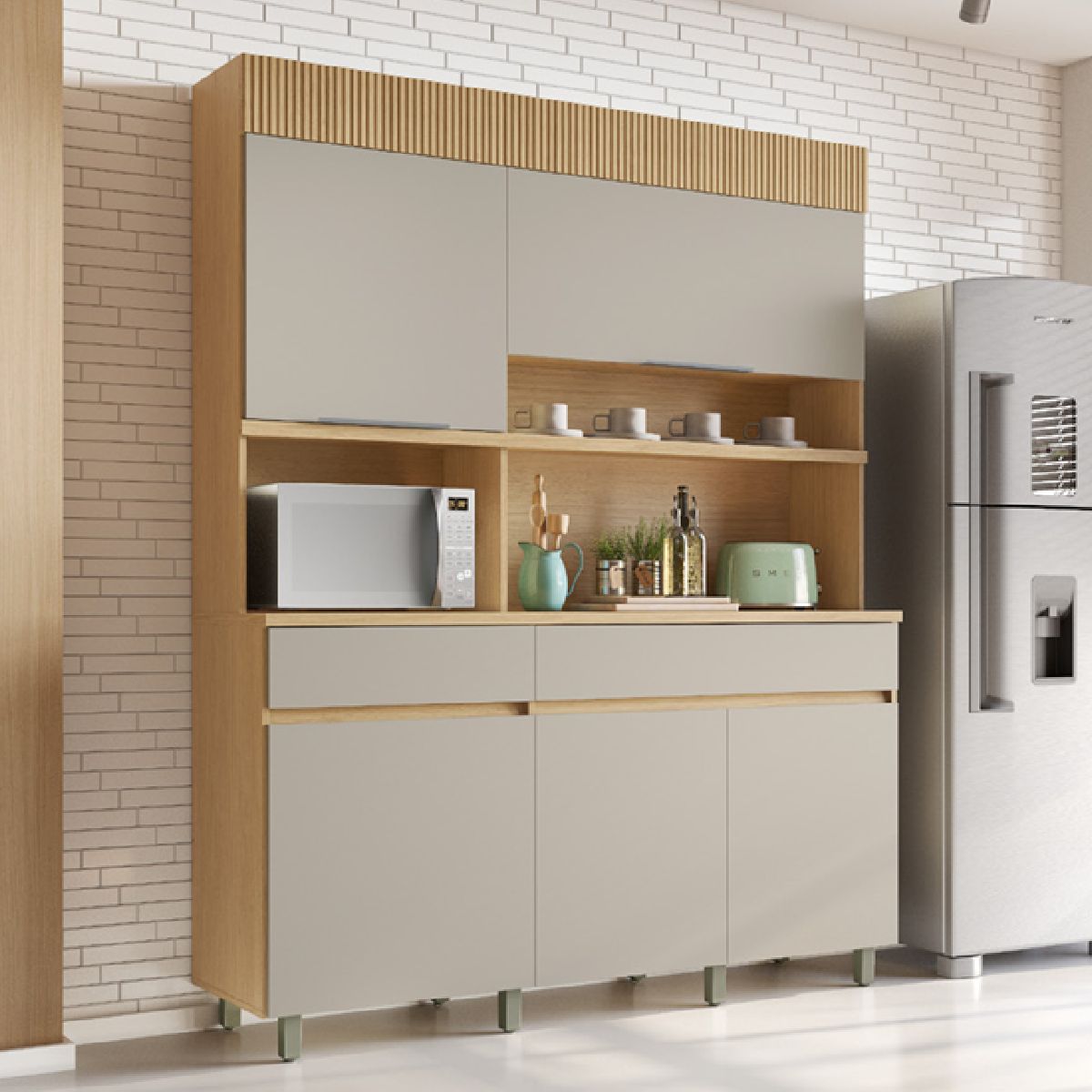 Construído 100% em MDF de alta qualidade, este kit de cozinha da Nesher garante durabilidade, resistência e um acabamento impecável, acompanhando sua família por muitos e muitos anos. É o investimento perfeito para quem busca um móvel funcional, com design atraente e a certeza de um coração da casa sempre em ordem e cheio de realeza!