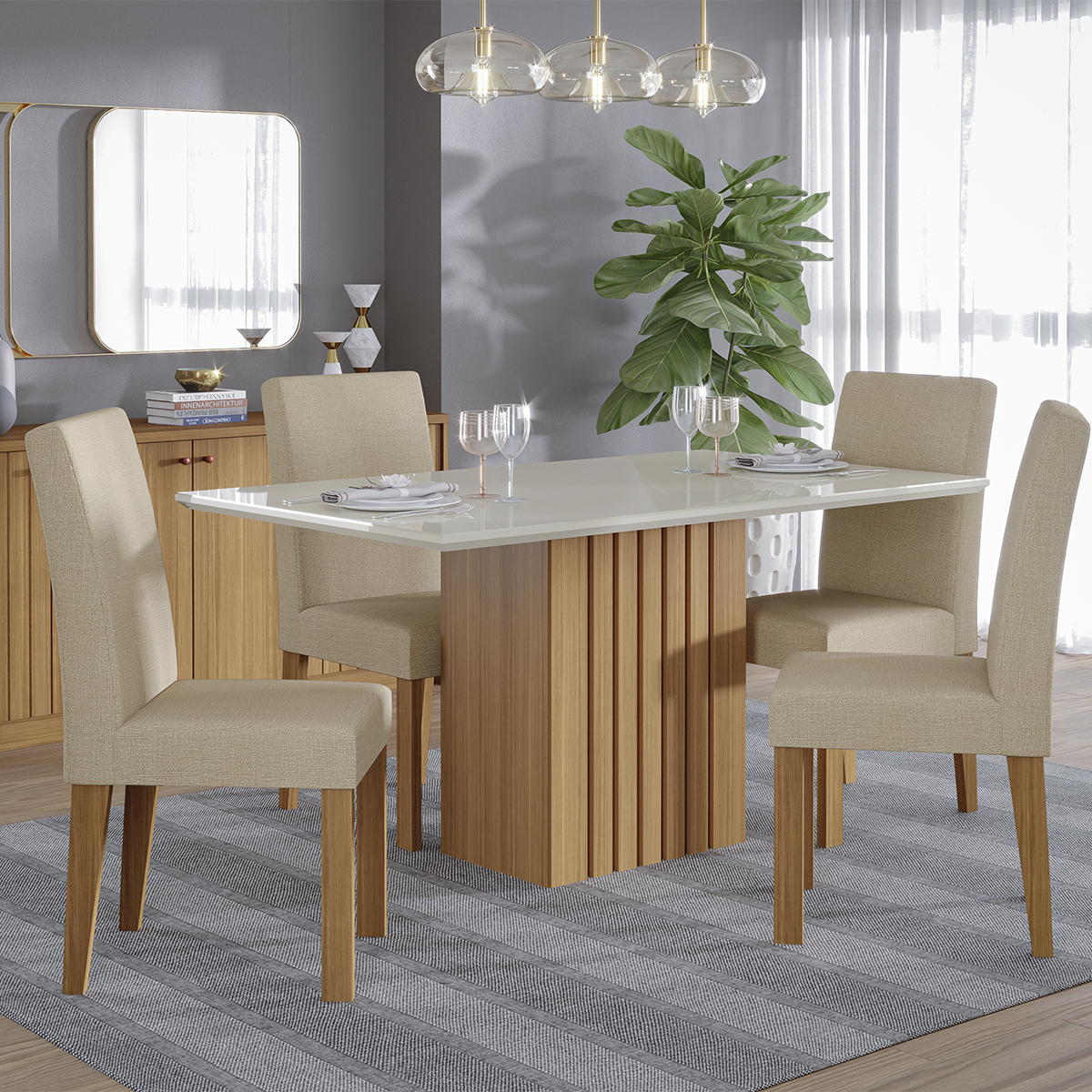 Sala de Jantar Cimol Ana 1,30m com Vidro e 4 Cadeiras Maia