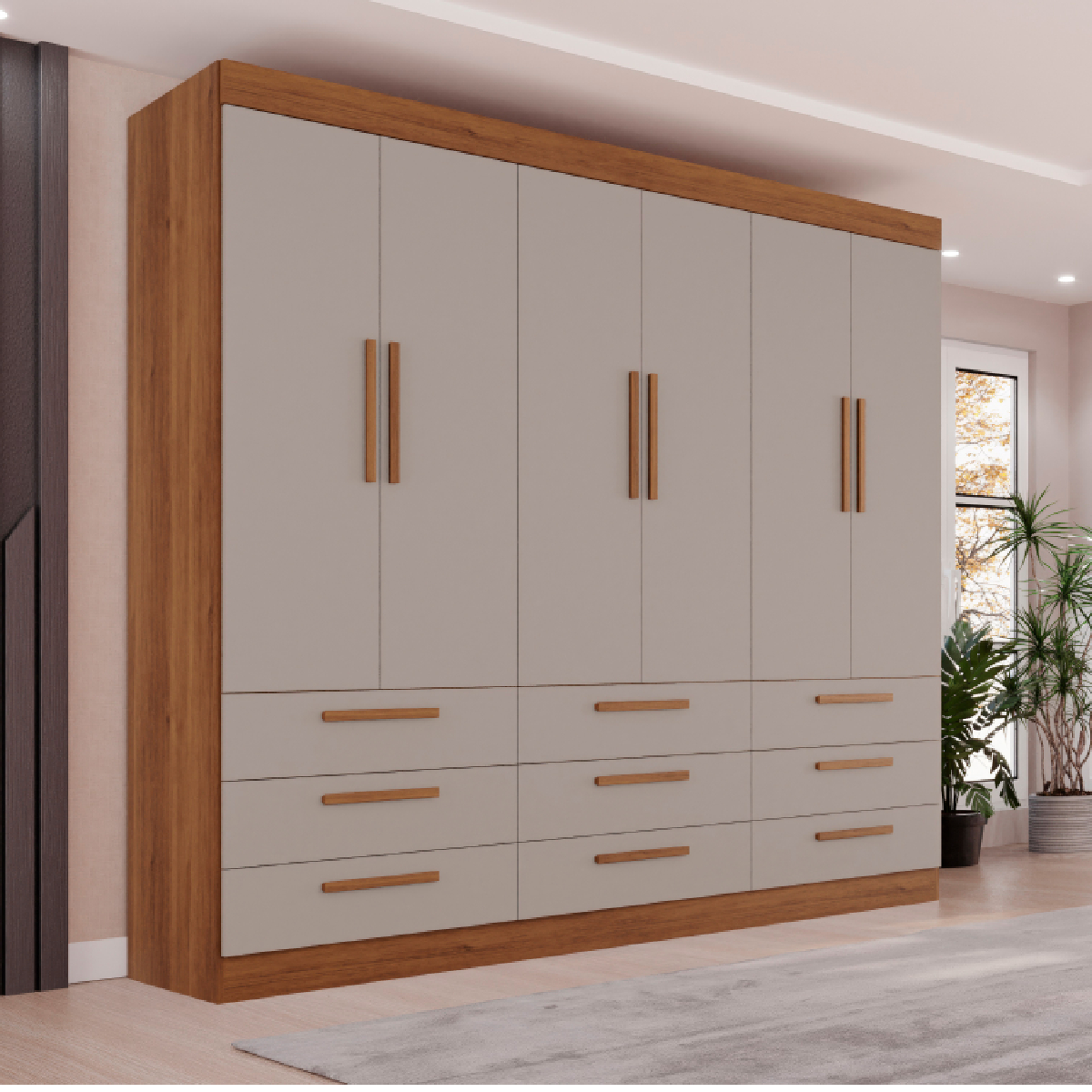 Transforme seu quarto em um verdadeiro oásis de organização e beleza com o magnífico Guarda Roupa Salleto Dinamarca 6 Portas 9 Gavetas! Projetado para oferecer o máximo de espaço e funcionalidade, este guarda-roupa é a solução perfeita para manter suas roupas, calçados e acessórios impecavelmente organizados. A combinação sofisticada de Cinamomo e Off White traz modernidade e leveza, adaptando-se a qualquer estilo de decoração e criando um ambiente harmonioso e convidativo.
