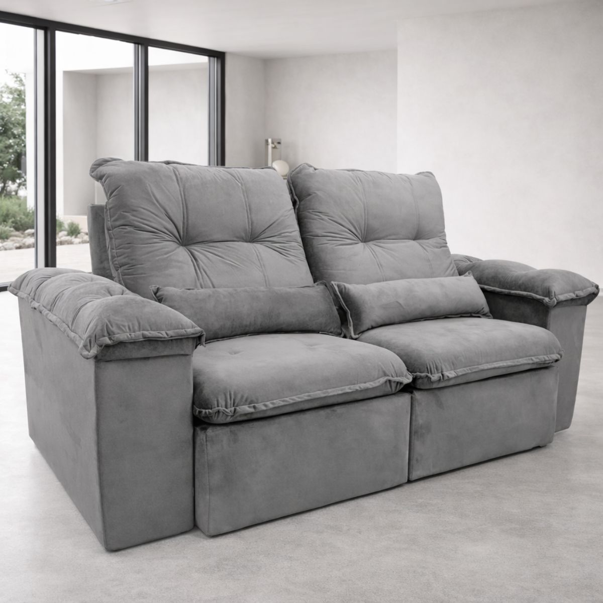 A tecnologia e o conforto são os pontos altos deste sofá. Com seu mecanismo retrátil e reclinável, você tem a liberdade de ajustar o assento e o encosto em 4 posições, proporcionando o máximo de comodidade para assistir TV, ler um livro ou simplesmente descansar. O assento conta com molas espirais, percintas elásticas, espuma D28 e um generoso Pillow de 15cm, enquanto o encosto é preenchido com fibra siliconada, garantindo um suporte perfeito e um conforto inigualável.
